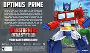 Transformers: Devastation ist ein actiongeladenes Beat ’em up Videospiel aus dem Transformers -Universum, das von Platinum Games entwickelt und von Activision veröffentlicht wurde.