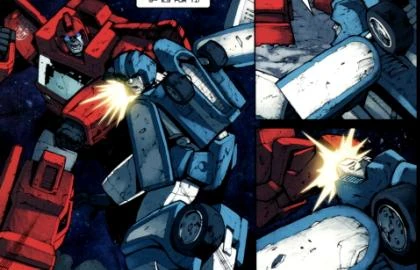 - Basados en los diálogos, los colores de Thundercracker y Skywarp pueden haber sido intercambiados en el primer panel de la página 2.