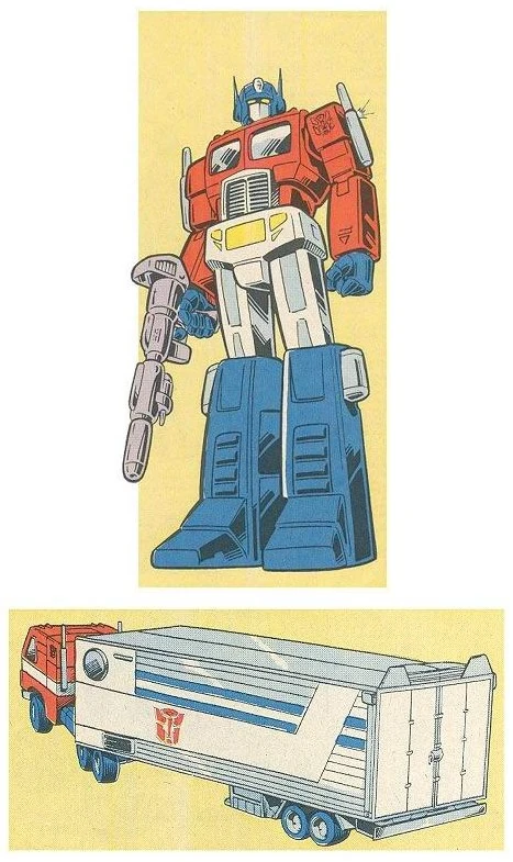 - В 1984 появилась первая фигурка Оптимуса Прайма, трансформирующаяся в грузовик-тягач и снабжённая рядом аксессуаров. В комплекте шли Роуллер и боевая платформа, а кисти рук игрушки являлись съёмными.