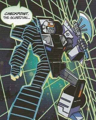 Чекпойнт и рыцари Юникрона смогли победить и арестовать автоботов. Но радоваться им пришлось недолго, потому что сам Кибертрон начал трансформироваться в «злую» версию Праймуса, после чего напал на героев. Тёмный бог попытался уничтожить Землю из другой вселенной, но та трансформировалась в светлую богиню Гею, которая дала ему бой. Вместе с рыцарями Юникрона Чекпойнт помог Гее победить Праймуса, выстрелив злому божеству в окуляры, тем самым ослепив его. После того, как Праймус был повержен, Гея стала новым Кибертроном, на котором поселились все жители прежнего, а рыцари Юникрона стали защитниками нового порядка[5].