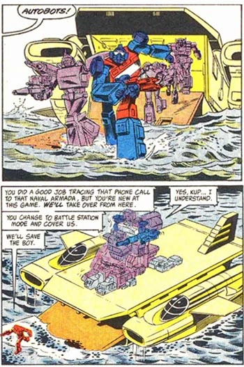 An All-Terrain Turbo-Transport from Steelhaven carried Fortress Maximus and the Autobot Targetmasters from Sparkplug Witwicky's home to an uncharted island in the Caribbean where the Decepticons were keeping Buster Witwicky hostage. While the Targetmasters swarmed the island, Fortress Maximus covered them in battle station mode on the ATTT's platform deck. The Desert Island of Space!