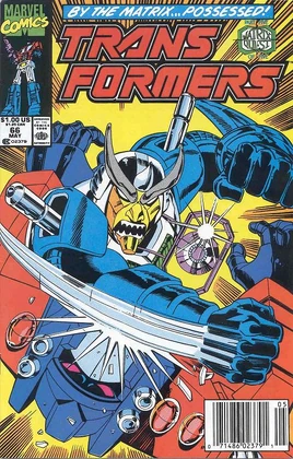 Back on the Ark, Thunderwing's mind has been completely subsumed by the Matrix's dark essence, and he's dropping Autobots left and right. Optimus Prime tries to reach Thunderwing's mind and convince him he has been possessed, but he refuses to listen. Only when the Decepticon Spinister speaks up and tries to tell him the same thing (and gets blasted for it by the Matrix) does Thunderwing realize he's losing control.