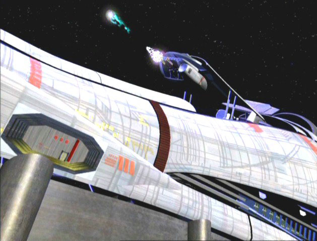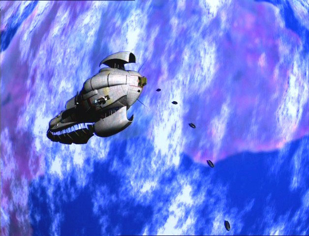 The Axalon engaged the Darksyde in battle as soon as both starships came out of transwarp, chasing the Predacon ship to a primitive world that would later be revealed as Earth. Outgunned by the Darksyde, the Axalon's engines were severely damaged and she was slowly dragged towards the surface by the planet's gravitational pull. Realizing their ship would not survive, their cargo of stasis pods were launched into safe orbit from the rear docking bay. Despite this grim setback, Optimus Primal was not willing to allow their enemies to escape, and so he ordered the forward plasma cannon to be fired at the Darksyde, a well-targeted shot that crippled the Predacon warship. Soon afterward, both ships crash-landed. Beast Wars (Part 1)