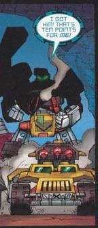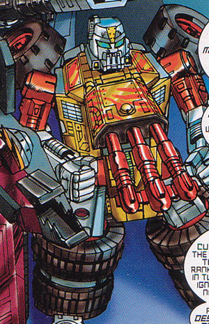 Blastcharge is big, strong and dumb. Really dumb. Regardless, of all the Vehicon Generals, his strength is second only to Tankor, so while he may be dumb, he's huge and has big missiles. Which he sometimes uses as cudgels. Aheh.