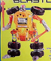 - Blastcharge is a tan, red and silver Cybertronic six-wheeled armored vehicle with a rotating turret. This turret stores three missiles, but only the middle missile can be fired with the spring-loaded mechanism. His other spring-loaded gimmick is that the front portion of his vehicle mode can spring forward and turn independently of the rear portion.