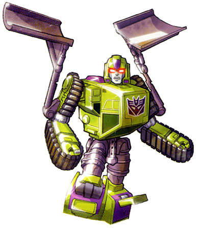 - A redeco of Robots in Disguise Wedge, Bonecrusher transforms into a bulldozer. His vehicle-mode grill/pistons disconnects to form a very wide double-barreled blaster. He forms the main torso of Constructicon Devastator, using the grill-blaster as a crotch-plate.