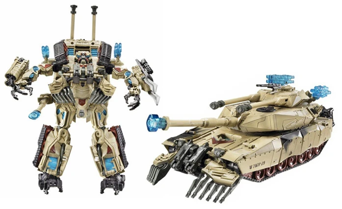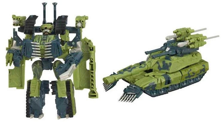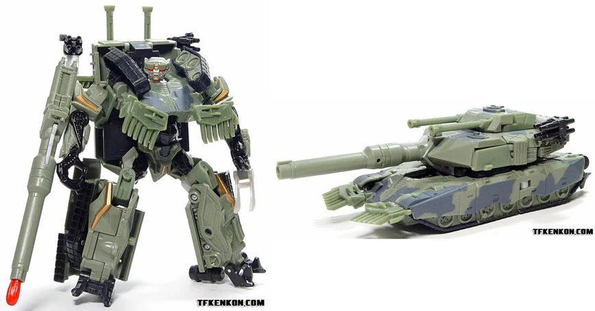- During transformation to robot mode, automorphing pushes down on the front of his tank during transformation raises the front of the treads and his head up into position for his robot mode, and vice versa for the tank mode. He is armed with his spring-loaded main gun on his right arm and a flip-out blade on his left.