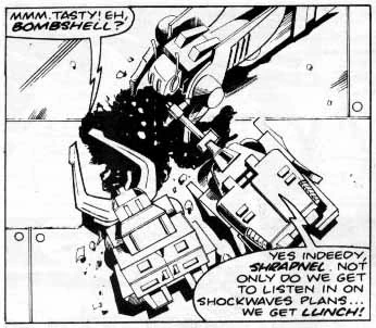 - Major characters (in order of appearance): Bombshell, Kickback, Shrapnel and Starscream.
