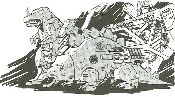 Most of the departed Transformers are riding Trypticon. Naturally, tempers flare after Headstrong picks a fight with the Dinobots by insulting Grimlock, so Sludge suggests they stomp him. The Preds stick with their teammate and fight the Dinobots, and the Terrorcons decide to fight everyone. At Sky Lynx's suggestion, Trypticon shakes himself and causes his passengers to stop fighting. They arrive on an ancient planet near the center of the galaxy. After touching down, Sky Lynx assumes command of the group, despite the objections of Razorclaw and Hun-Gurrr. Finding a cave, they encounter a strange entity. He explains that he summoned the Primitives, all animal-based Transformers, to come to fight Tornedron, the energy being who was created by Primacron. The entity, who was once Primacron's assistant, explains how Primacron created Unicron but was nearly destroyed by his creation. After Unicron's defeat, Primacron created Tornedron as a replacement. Primacron's assistant hopes that the Primitives' simple instincts will allow them to defeat Primacon's complex plans.