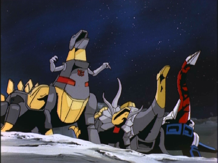 - This episode seems to resolidify the Dinobots' position as freakishly powerful (which took a beating in Season 3), as Grimlock alone seems to be a match for three Terrorcons and two Predacons, and the only Autobot sent flying is Swoop (ironic), who takes a blast to the chest early on. Also, the Dinobots seem to handle Tornedron with the most finesse.