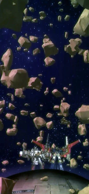 Charr has been reduced to a dangerous asteroid belt, though its metallic moon still floats within the dense rocks, a marginally more stable location.