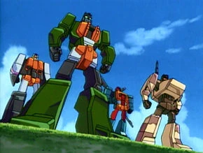 The Commandos were sent to Montrose Island to aid Scourge and the Predacons, though in their Ruination form they were easily taken down by the Spychangers. They recovered and managed to unleash a lava flow that threatened everyone, including themselves and the day was ultimately lost for their side. Volcano In an attempt to find the Autobot base, they had Movor launched into space to spy on the Autobots from orbit. Unfortunately the Autobots were quickly clued in and led the Decepticons on a merry chase ending in an ambush at Pier 7B, at which point the Commandos realized that without Movor, they couldn't form Ruination. In the aftermath of their defeat, Movor returned to Earth. Attack from Outer Space These guys eat too much red meat.