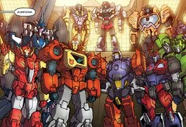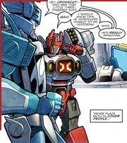 While fighting the Ammonites on Hydrophena, he invited Swerve (who he confused with Rung) to see one of his plays (if they both survived). The Dead Are Not Enough Unfortunately, he had already forgotten Swerve's name a few hours later when asked by Blurr. Inside Swerve's bar. Named Swerve's. The Becoming When the Ammonites attacked Cybertron shortly afterwards, he joined in the fight there. Black Planet