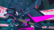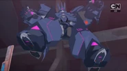 Cyclonus is an extremely loyal and efficient Seeker in the Decepticon army and Megatron. His chilling voice speaks of the destruction that they will rain down on their enemies, and he delights in his cruelty. He can combine with his fellow Decepticons Cyberwarp, Skyjack, Treadshock, and Riotgear to form Galvatronus, he's got the muscle to back up his mouth. He freed Soundwave from the Shadowzone to summon back his master, Megatron and restore the Decepticon Empire. He serves as the main antagonist of the third and final season of Transformers: Robots in Disguise.