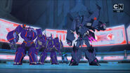 While the Decepticons were training on the streets of Iacon, they received a message issuing a challenge from Cyclonus. Cyclonus met a small group of Decepticons atop a building, announcing he was going to "bring them back to reality". They proceeded to battle until Cyclonus was soundly defeated and agreed to join the Decepticon cause.