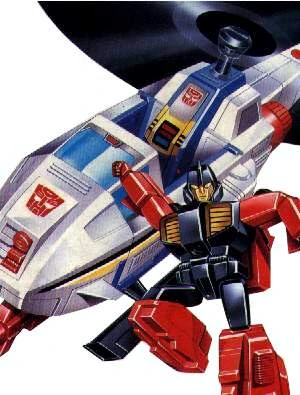 Deadwheeler is one of many Micro Transformers who fight alongside Dai Atlas and the other Powered Masters. He pilots the Sky Hyper helicopter base. He is presumably childlike and precocious and suchlike.