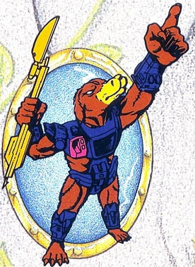 - Dog hunter is an anthropomorphic English Pointer dog with dark blue robotic armor. He came with his "Beam Hunter" bayonet-rifle weapon. He has one of three rubsigns on his chest, revealing the elemental power of fire, water, or wood.