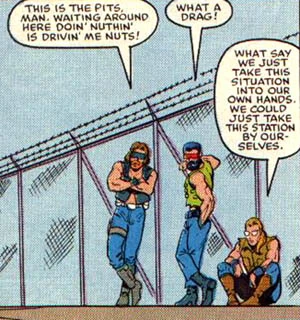 The Dreadnoks Torch, Ripper, and Buzzer were ordered to monitor the unveiling of the powerful energy-creating device Power Station Alpha, but since they were bored, they blew their cover and attacked it on their motorcycles. After being forced to retreat when their "plan" was ruined by G.I. Joe, they failed to take potshots at a little yellow car and then were chewed out by Zarana. Blood on the Tracks