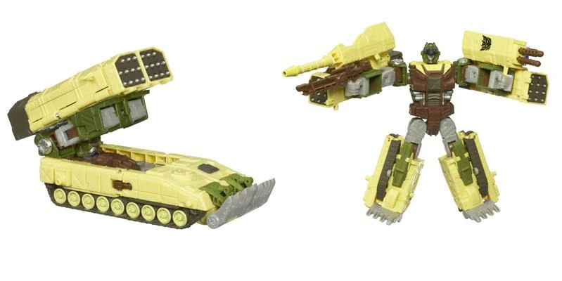 - Part of the second wave of Universe Voyagers, "Decepticon Dropshot" is a redeco of Cybertron Defense Scattorshot, transforming into a Multiple-Launch Rocket System of made-up model mounted on a Merkava 2 tank hull. The halves of the (non-firing) launcher end up on his arms in robot mode. In either mode, inserting a Cyber Planet Key in each half reveals a new weapon: one side has a pull-out double spring-loaded missile launcher, while the other has a flip-out non-firing blaster barrel. He also comes with an extra long hand-held rifle that can be mounted in tank mode thanks to his Mini-con-compatible Powerlinx plugs.