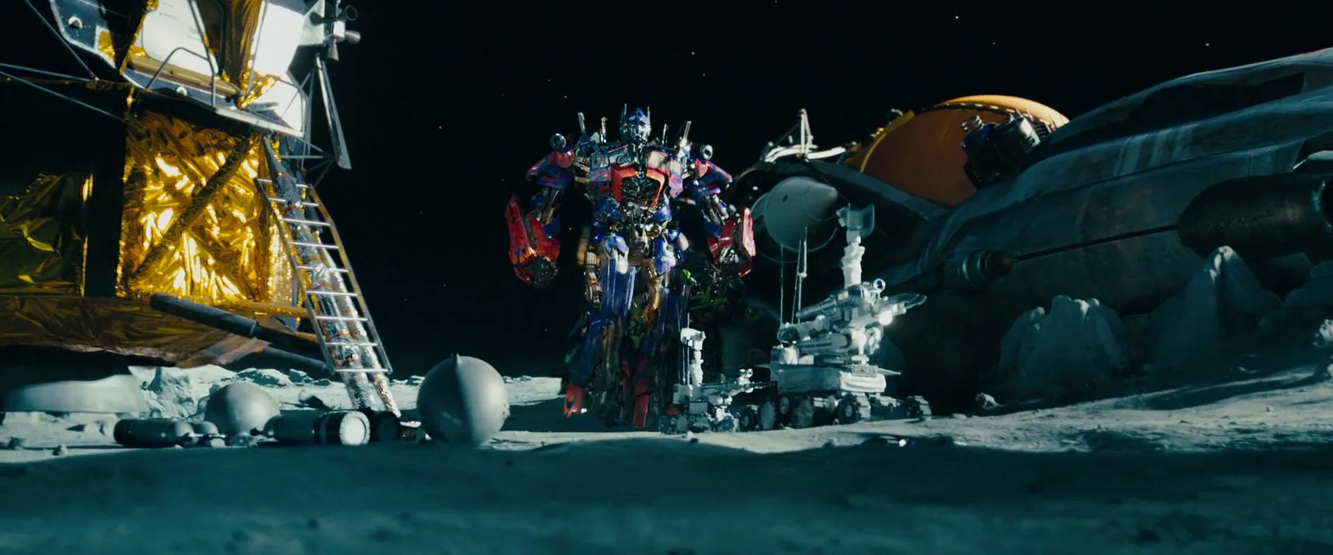 The Ark, piloted by Sentinel Prime, crash-lands on the Moon