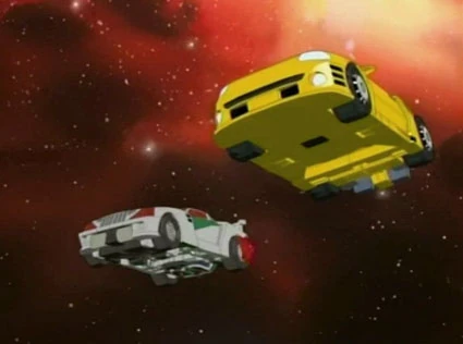 In choosing to set most of its action in the void of space, Energon foolishly robbed the Transformers of any real reason to transform. They can all happily fly in robot mode (in space, on planets, anywhere), inviting the question of why transformation is necessary. But, to promote the fact that the toys transform, characters would routinely change to vehicle mode anyway, even in outer space. Cue innumerable scenes of cars, trucks, and snowmobiles driving through space. Characters would even transform to vehicle mode on the ground, and then drive away into the air. Everyone could control their flight with no problem in either form, completely invalidating the need for any variety in alternate mode.