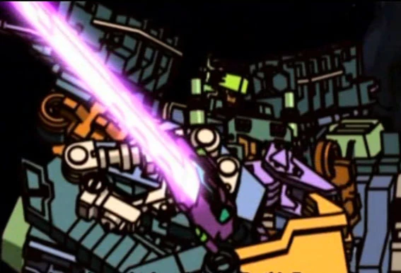 At times, Energon tends to flow like a single feature-length film — a film that has been mercilessly chopped up into 22 minute segments. Thus, confusing, unclear elements like the rift in space and Unicron's dark, partially re-energized body are routinely shown in closeup without any introductory establishing shots, making it extraordinarily unclear what's happening or where for the viewer who's just watching one particular episode by itself. To be a little bit fairer, this "chopped-up film" sensation is not exactly uncommon in Japanese animated series with a defined length, but Energon is a good example of the method at its very worst.