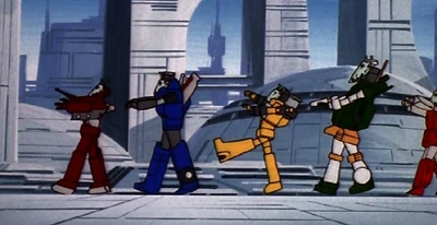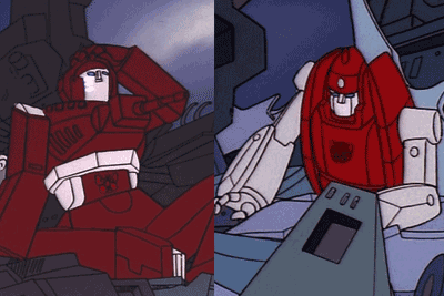 - Warpath and Powerglide are missing their face plates after the explosion scene.