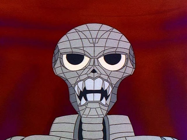 After being injured on Chaar, Rodimus Prime experienced a bizarre (probably metaphorical) vision. He saw the physical form of It, which shattered, releasing a dark destructive presence that destroyed a sequence of ancient Cybertronians before fading to reveal the eerily-similar face of a Quintesson Judge, which also shattered. Five Faces of Darkness, Part 2