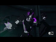In Get a Clue, after taking Boostwing into custody, Strongarm puzzled over the fact that he had seemed to be in multiple places at the same time, suddenly realizing that he must have had partners–and that the Crown City Gold Depository would be where they would find "the brightest shinies on the planet". Her intuition paid off as she found Jacknab there, and she attempted to take him into custody, only to be foiled by the arrival of a third brother, Pilfer. Between the two of them they overwhelmed the outnumbered Autobot, and Jacknab prepared to harvest her optics as trophies to give to Boostwing, when the arrival of the rest of the Bee Team foiled his plans. Defeated shortly thereafter, Jacknab found himself cuffed to Pilfer and advised he had the right to run in silent mode.