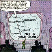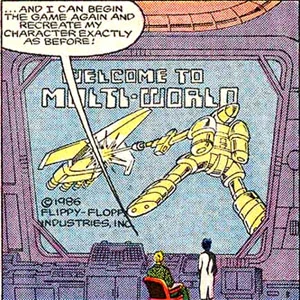 Confronted with a state-of-the-art computer system with groundbreaking graphics and the finest storage devices available, most young, unsupervised programmers would doubtless think of nothing more than performing the necessary tasks designated by their employer. However, this has not always been so. Ethan Zachary, an innovative lad who worked for Energy Futures Industries, discovered a completely unexpected use for his employer's powerful Spectramax mainframe: it could run Multi-World, by Flippy-Floppy Industries, a "video game" for multiple players, so lifelike it is "virtually real". Perhaps some day others will follow his example.
