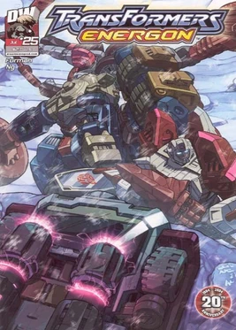 Eight days later, at Ocean City, Optimus Prime finishes up a conversation with Hot Shot and steps into a space bridge portal to Cybertron, but instead finds himself inside Unicron—and face to face with the disembodied head of Megatron!