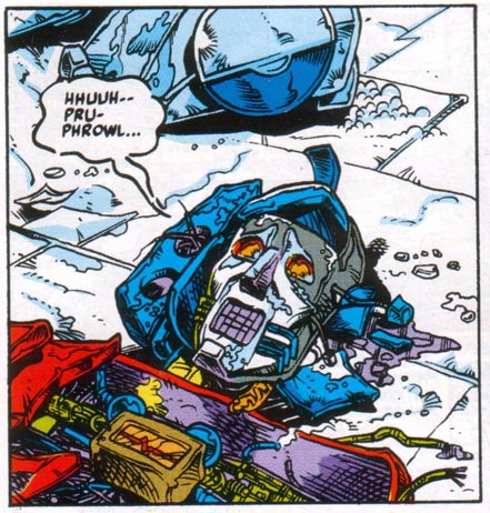 He appears very briefly in the first few pages, in his "Ice Age Wars" body (we only see him in robot mode, but his altmode is a brachiosaurus[4]). Hearts of Steel issue 1 He spends most of the story in stasis lock.
