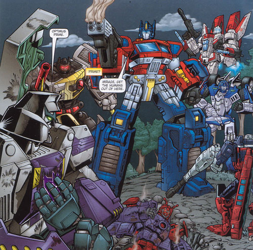 At some point in the next year, Optimus and Megatron would face off on Earth. Optimus would be left in a critical condition after the battle, and the Autobots would be forced to leave Earth to the Decepticons. All Hail Megatron issue 1
