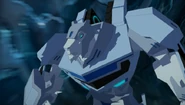 After he spots all of the Autobots in Overloaded, Part 2, Polarclaw uses his sonic roar to start an avalanche. The Autobots survived the avalanche and scanned for a camouflage colored scheme that allowed them to avoid being detected by Polarclaw as they made their way up to his cave. Polarclaw returned to his cave to prepare for hibernation, only for the Autobots to observe him in their camouflage. Sideswipe grew impatient as he attempted to move in on Polarclaw, only for the Decepticon to be alerted by his squeaky wheel and then headed out the back exit of his cave. Polarclaw tried to slow down his pursuers by using his sonic roar again to cause a cave in, but it proved to have little effect. As the Autobots spot Polarclaw driving in his vehicle mode, they ended up being at the bottom of the water where Optimus came up with a plan. Windblade was able to get Polarclaw into the water as Sideswipe was thrown at Polarclaw by Optimus and Drift to bring the Decepticon further into the water. As he did, Polarclaw attempted to use his sonic roar but it proved useless just as Sideswipe stated. The three Autobots surrounded the Decepticon as he prepared to fight them, only for the temperature to obstruct his fighting abilities, thus allowing Optimus to punch Polarclaw unconscious. Optimus picks up their captive and head for one of Windblade's caches to store him.