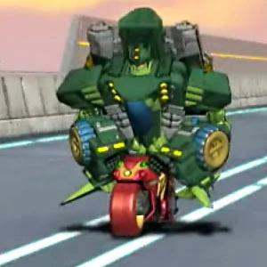 Ransack and Crumplezone were the first Velocitronians approached by Megatron, and were quickly cowed into servitude. Under Megatron's command, they sought out clues to the planet's Cyber Planet Key, first terrorizing Brakedown and Clocker, then convincing Dirt Boss to help them win the Planet Cup race. All throughout, they snuck around, trying to manipulate and cheat their way though, eventually abandoning Dirt Boss during the desert portion of the race. They made it to the final leg of the race, a vast, twisting track deep inside the planet, but blew all their power very early in the race and were left eating dust by Hot Shot and Override. They decided to attempt to just flat-out steal the Planet Cup, and naturally failed.