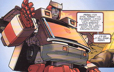 When Prowl devised a plan to use the Matrix to create an army of monstrous Autobot warriors, debate over the plan's ethics threatened to divide the Autobots. Ratchet remained neutral and asked Optimus Prime to step in and provide guidance. Crisis of Command!