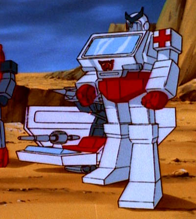 Ratchet is the Autobots' Chief Medical Officer. If something's broke, he can fix it. Ratchet is known for his irreverent bedside manner; he loves having a good time, and his party-loving nature has given him a dry wit. He is not a particularly mighty warrior, which sometimes leads him to believe that he is expendable. Optimus Prime has trouble convincing Ratchet that this is far from the truth.