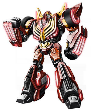 Rodimus (not to be confused with Hot Shot) is an Autobot serving under Optimus Prime in the Great War. Young and impetuous, he's always waiting with enthusiasm and confidence for his next mission (so long as he isn't paired with Kup again). Perhaps he's got something to prove, but any leadership qualities he might possess have yet to show themselves. Rodimus constantly seeks the approval of Optimus Prime, and is particularly proud of his appearance and the phoenix on his chest. His favorite weapon is a rocket bow, known to employ hi-ex rounds and various other warheads.