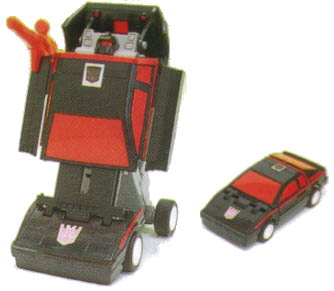 Runabout is a little faster than Runamuck, with a 185 MPH top speed, but can only go about 550 miles. He is equally able to transform quickly, taking about .4 seconds to do so. Also like his partner, he is not averse to breaking windows or draping cylinder-wiping paper over the enemy base, or other puerile acts of vandalism. But he uses bigger words when doing so.