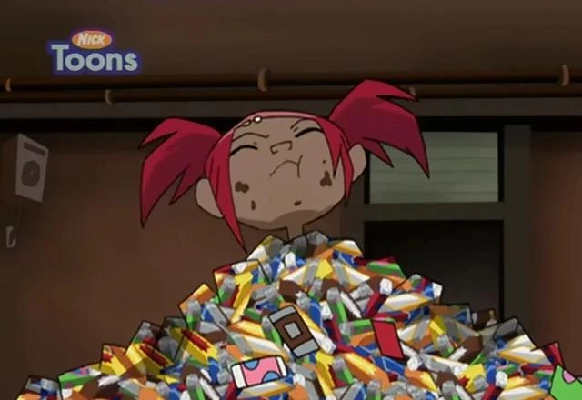 At the plant, Mix and Scrap decide to take down Sari, but Sari sets up the factory machines to thrash them, put them on the assembly line, get riveted, magnetized, and dumped on the ground. Mix finally calls it quits, and the two roll out. When the Autobots return, they fear the worst upon seeing the damage, but Sari shows up and tells them how she drove them off. Prime apologizes for doubting her and offers praise for her bravery and ability to drive off Mixmaster and Scrapper...until he sees the candy wrappers...
