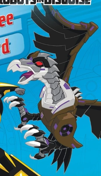Scuzzard laid waste to a good portion of Kaon before law enforcement managed to take him down. He was a prisoner aboard the Alchemor when it crashed on Earth, depositing his stasis pod in a marsh. After attempting to chow down on the bridge into Crown City, Scuzzard attacked Denny Clay's truck, attracted to the pinball machines it carried. When Denny managed to shake him off, Scuzzard ended up circling Doug's Den in the amusement park, until Sideswipe managed to make like bait and draw him away into the woods to an Autobot ambush. Despite Scuzzard putting up a decent fight, the Autobots captured him and were taking him back to base when he was suddenly spirited away by Filch, who had escaped captivity in the scrapyard. She took him to the amusement park, but when he started eating the rides, she saw his as a threat to her territory, and the two Decepticons fought. The Autobots soon arrived to intercede, and Sideswipe and Grimlock tag-teamed Scuzzard, eventually driving him into some power lines and shocking him unconscious. They returned the incapacitated Decepticon to their base and stuck him in a stasis pod.