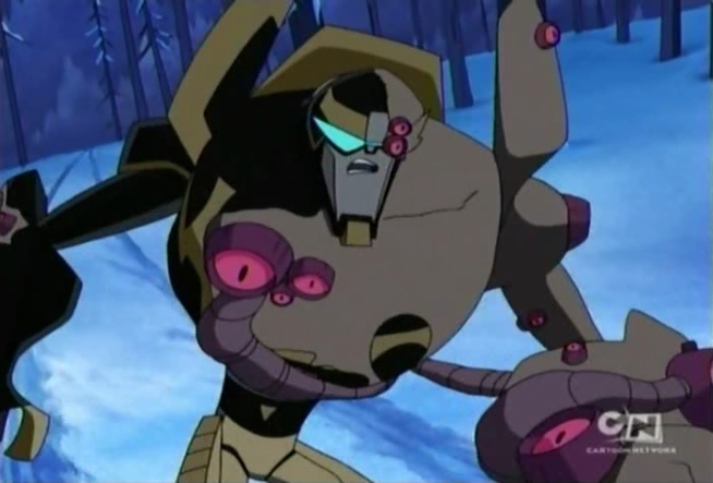 On an expedition to locate the energy source, Bumblebee, Prowl,and Sari Sumdac set up camp in the forest and were soon attacked by the space barnacle monster. Only after they managed to escape it were they able to identify just what it was, and discovered the mine it had attacked, which was presumed was its lair. Prepared to attack the monster as it exited, the impromptu hunting party was attacked from above, as the space barnacle monster pushed a large pile of snow and debris down on them, trapping Bumblebee and Sari inside the mine. After mistaking a hologram of Prowl for the real thing, the monster rammed the entrance of the mine, removing the debris blocking it and freeing Bumblebee and Sari. The monster chased Prowl into the woods, and was momentarily stunned by the heat from his booster rockets, but was able to overpower him and crushed him against a tree. Just as it was about to deliver the killing blow, the monster was hit by a powerful blast from Bumblebee's stinger guns, sending it tumbling off a cliff and into the shallow river below.