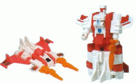 - This toy was released with no deco changes (but with an extra decal sheet) in Japan as the former-Decepticon-turned-Autobot Strafe. This mold was also used for the Universe version of Space Case and Robot Masters X-Gunner.