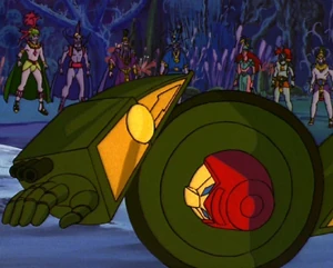 Omega Supreme helps the Titans to escape over the abyss that surrounds the temple mount, and the Titans thank the Autobots for their help. Jazz expresses relief that the Decepticons won't be messing around with the Titans' religion again.
