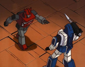 - —Optimus Prime and Megatron discuss the finer points of legal ownership, just before Kickback supports Megatron's point by blasting Prime