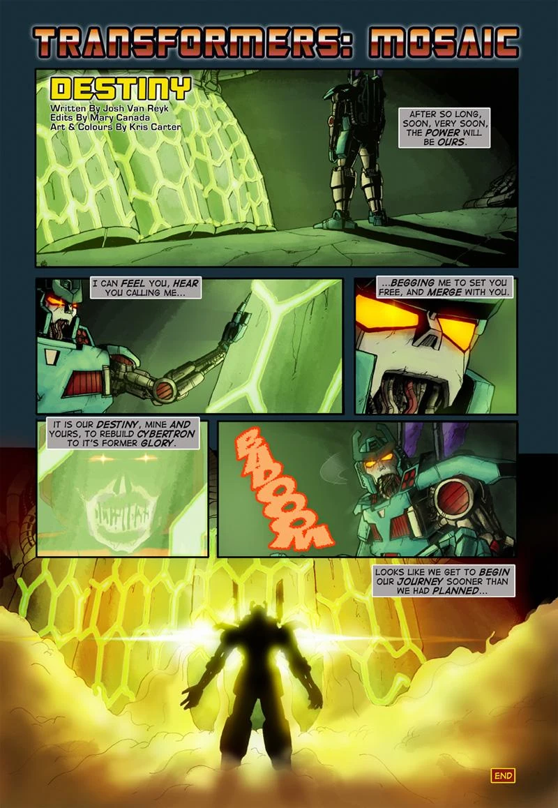 At May 29th, 2012, it was announced on Seibertron that Transformers: Mosaic had ended [1] It was also announced on Transformers: Mosaic's official deviantART page [2]. It was then announced that it would be "replaced" with a new project founded by artist Brandy Dixon.