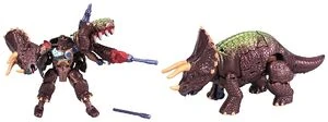 - Triceradon is a redeco of the Beast Wars Neo Destron Guiledart. He transforms into a triceratops, and has a third mode that's supposed to look like a dead, decomposing triceratops. Really. His beast-mode tail detaches to become a spring-loaded missile launcher, plus his dino forelegs have flip-out (non-firing) blasters for robot mode.